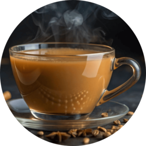 Spiced tea brewed with ginger, cardamom, cinnamon, and cloves, offering warm