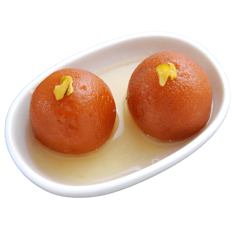 Deep-fried dried milk solids balls soaked in cardamom-infused sugar syrup
