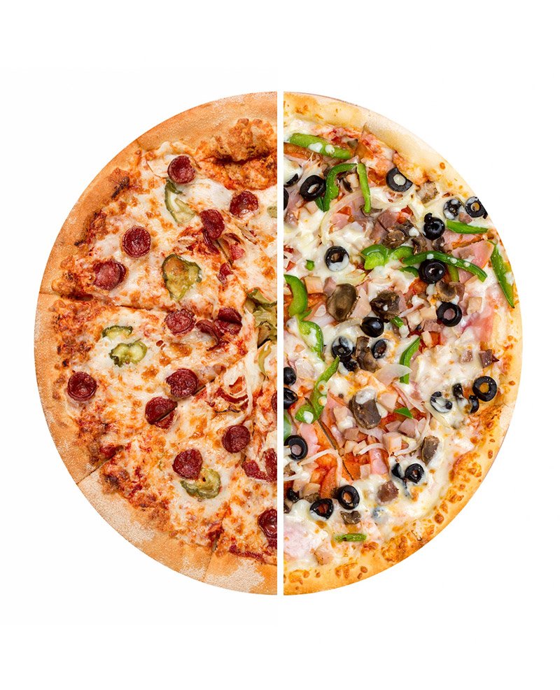 Choose your favorite flavors and create your own 2 halves pizza. Add extra toppings and make it really yours.