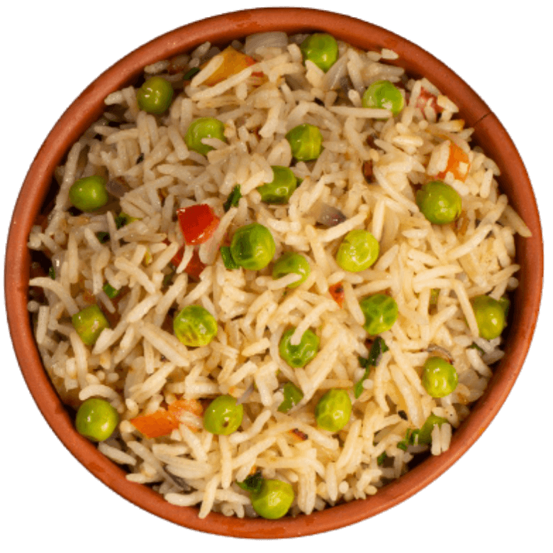 Basmati rice cooked with green peas and onions